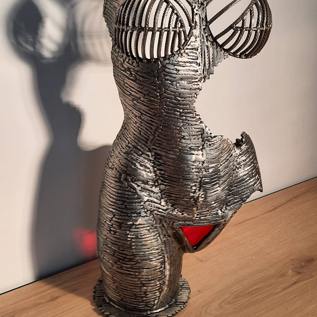 Il y a environ 2 ans je ne sais pourquoi, un reste de barre de fer à béton dans un coin de mon atelier m’interpelle. Mon imaginaire n’a fait qu’un tour, et aussi tôt, j’enfile mon tablier de cuir, saisi mon poste à souder et une nouvelle aventure artistique commence.