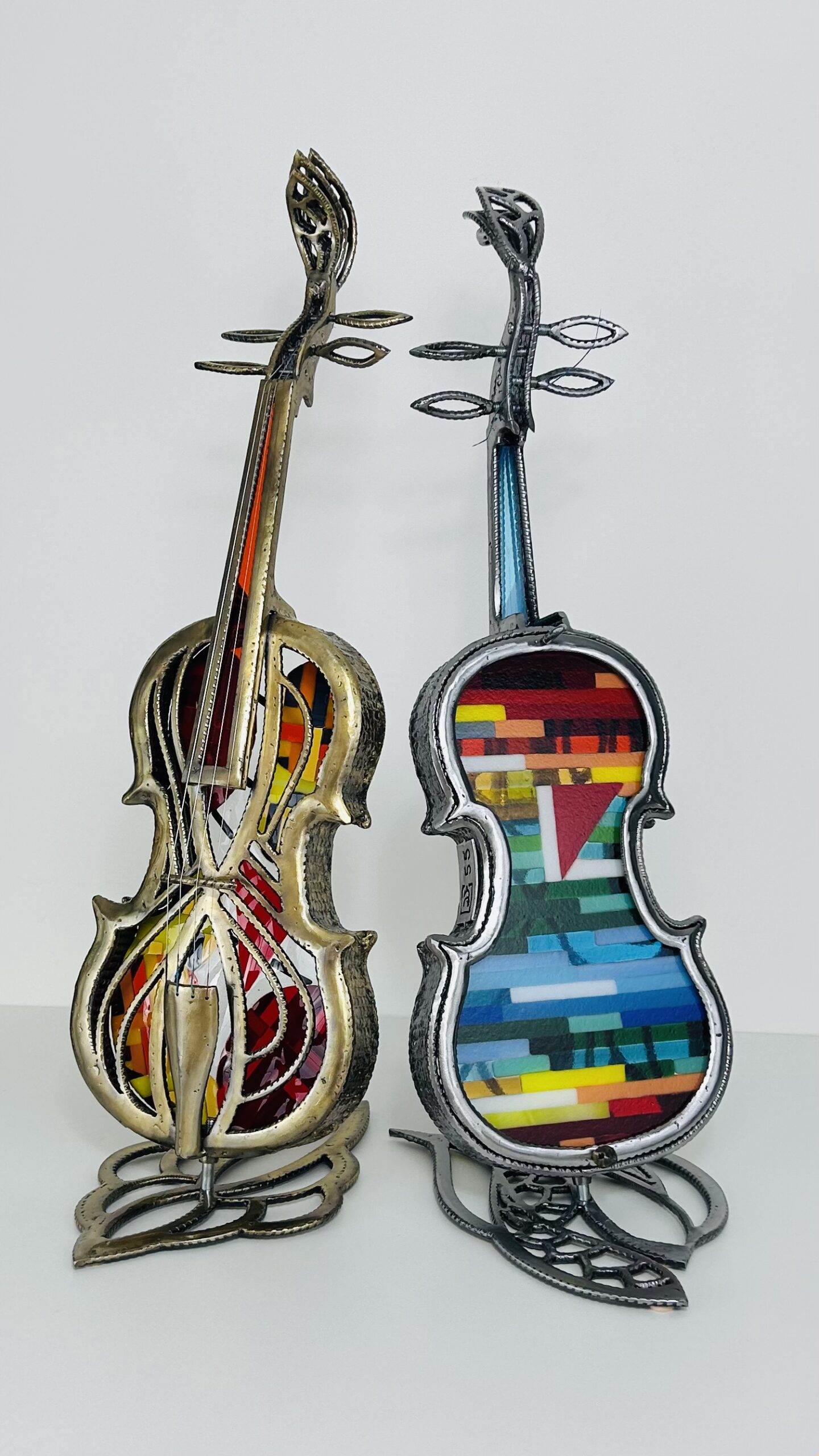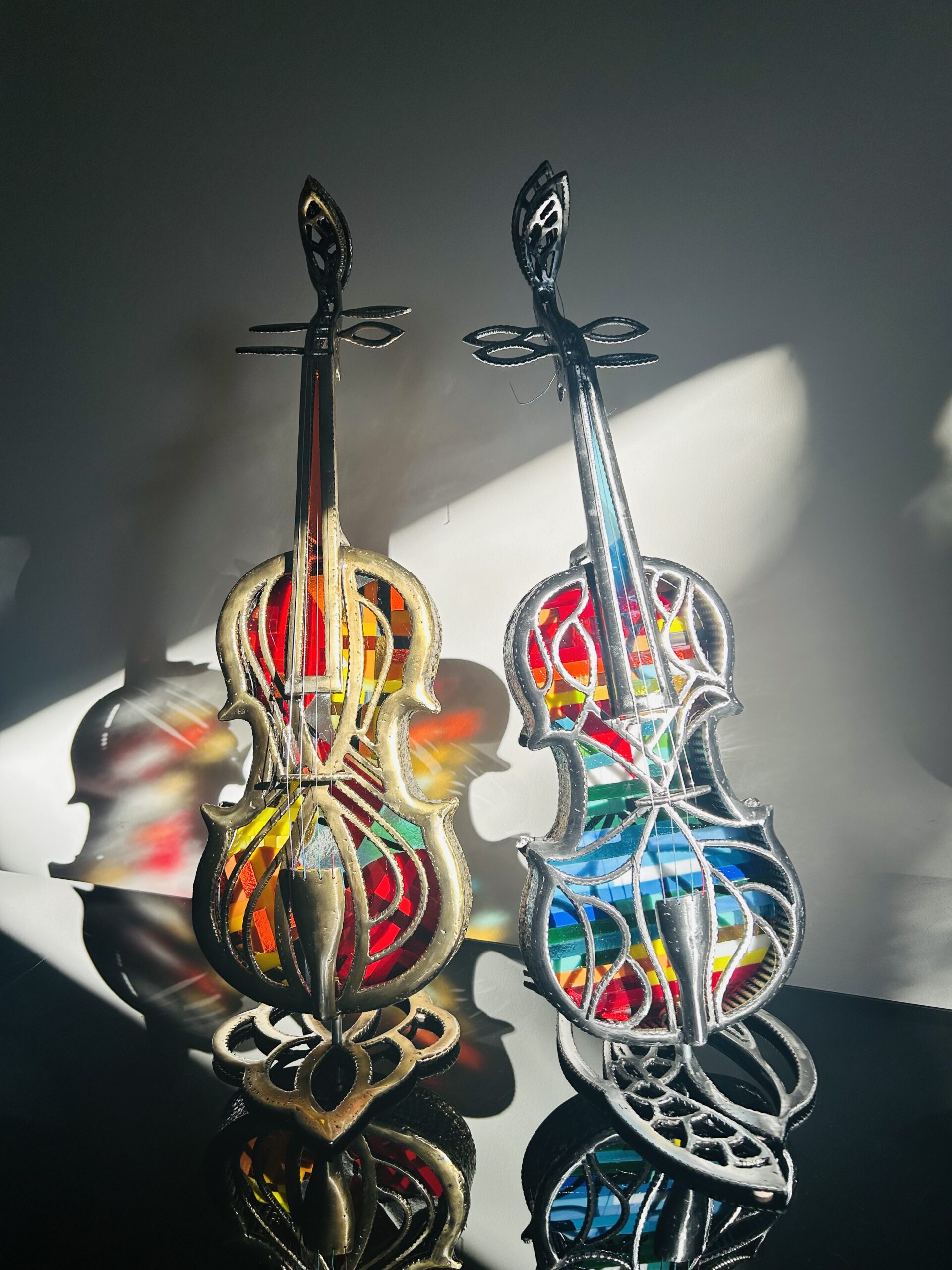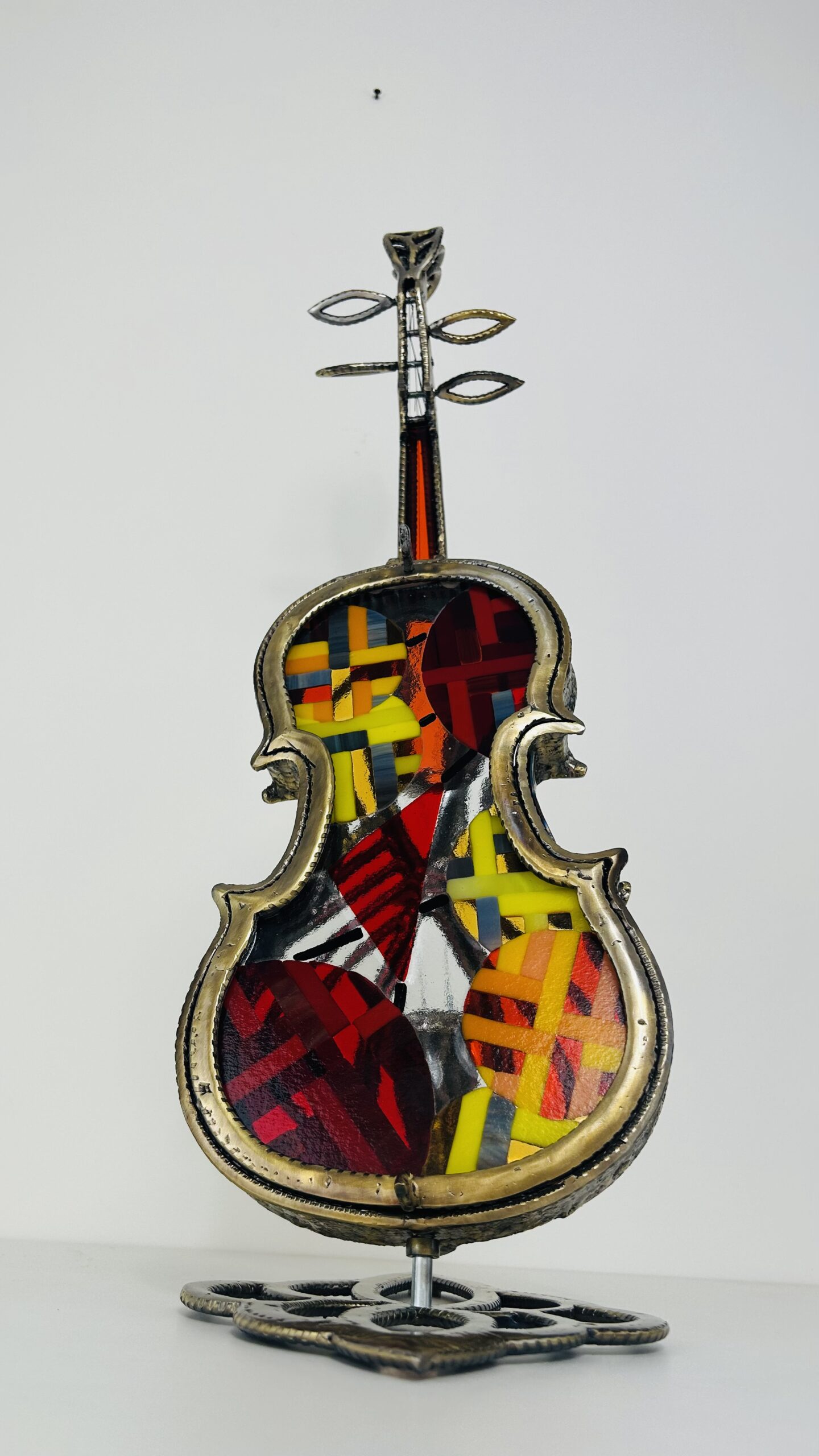 Pour ce violon, j’ai eu envie d’explorer une technique du vitrail qui me tentait depuis longtemps : le fusing !