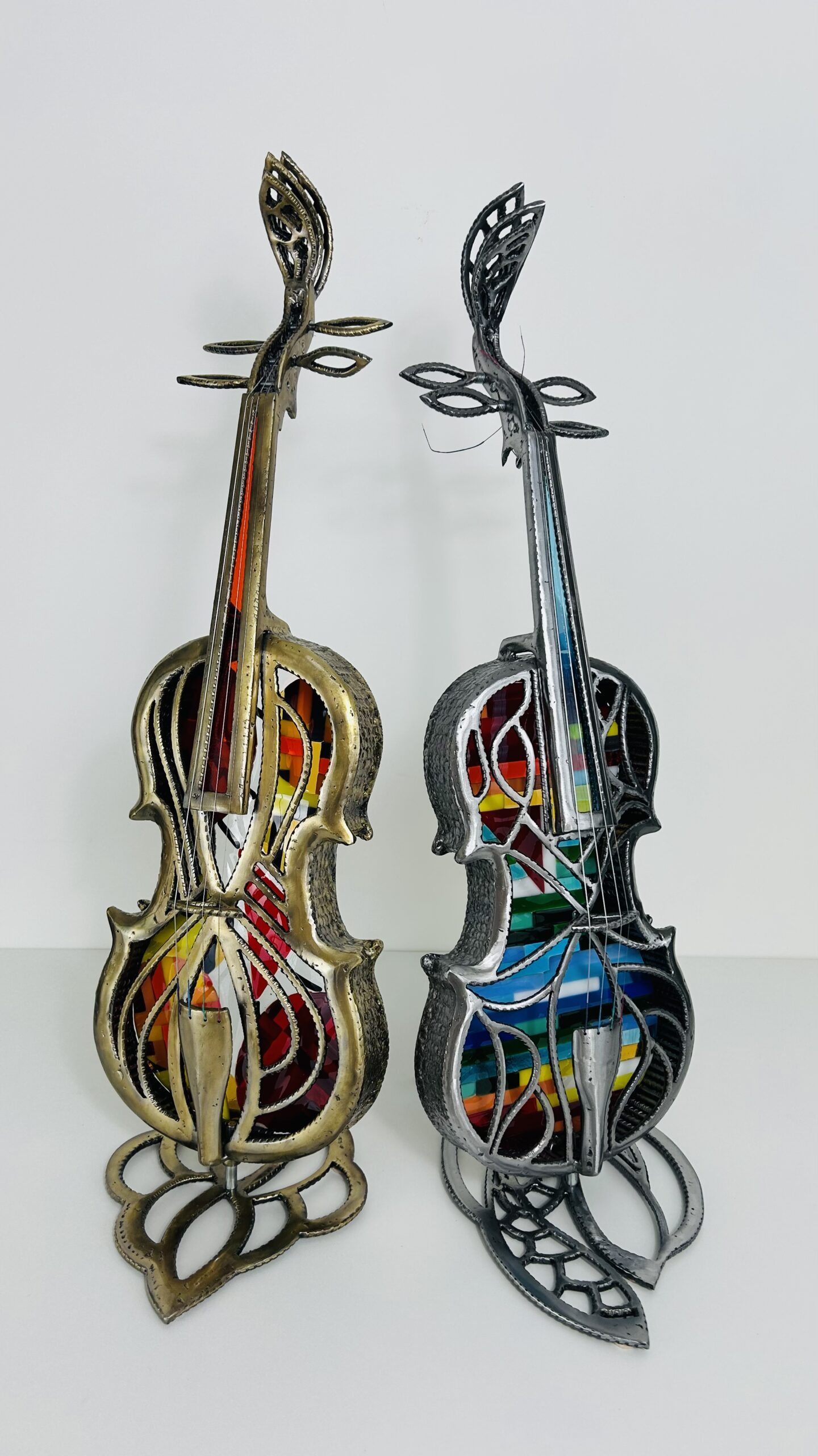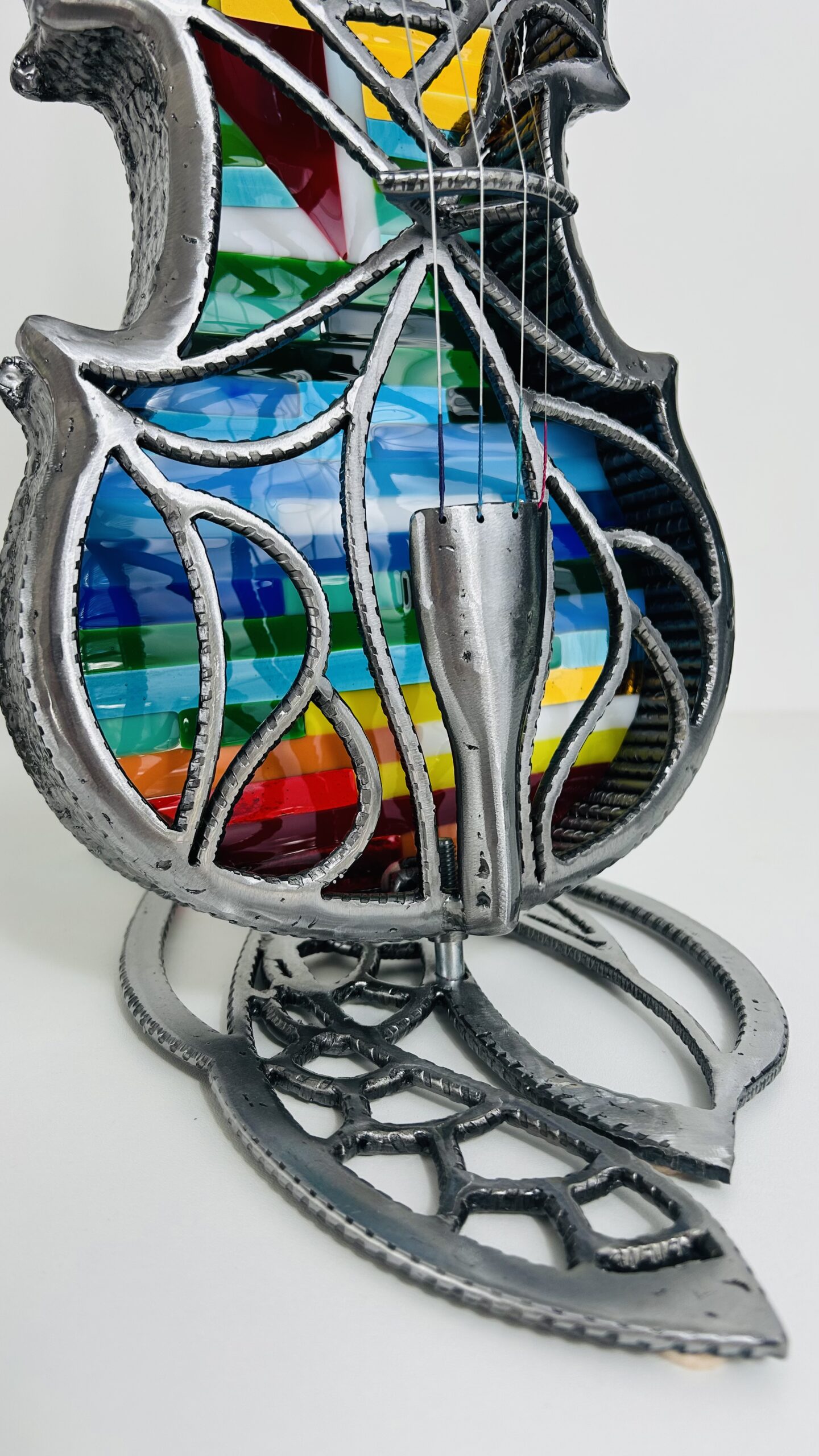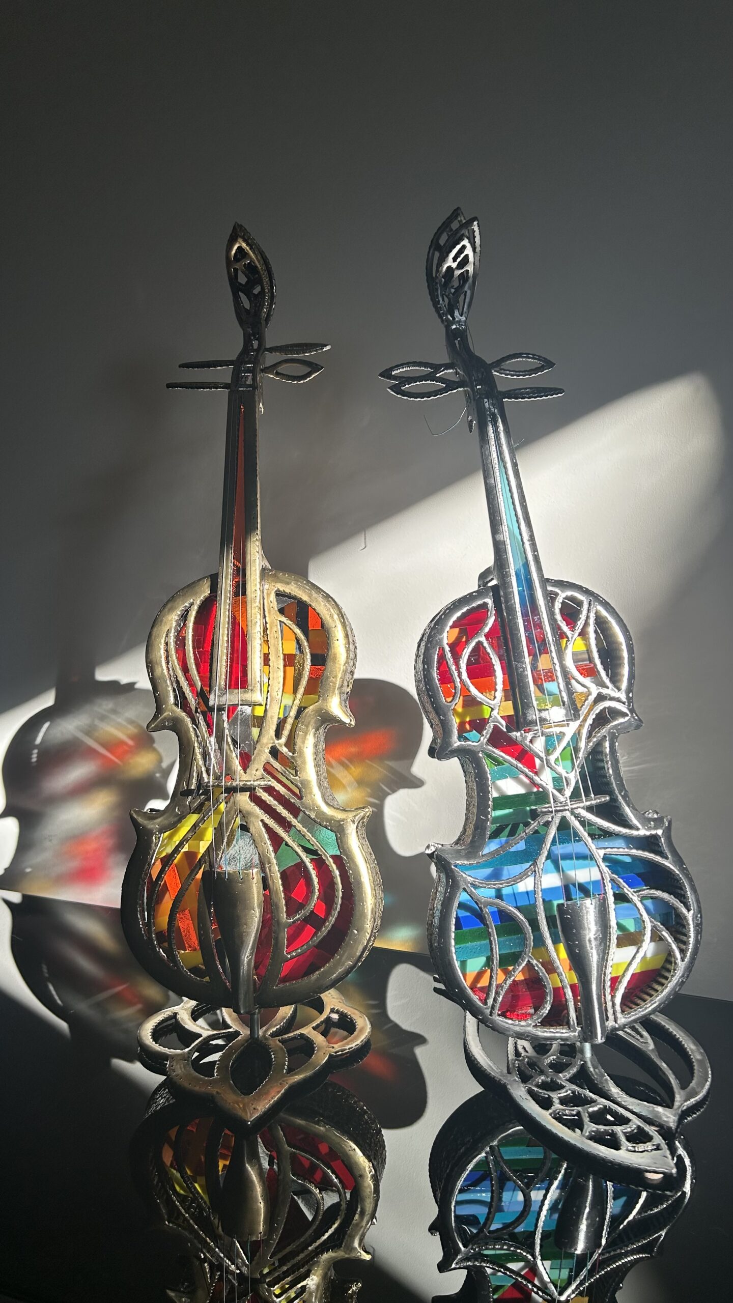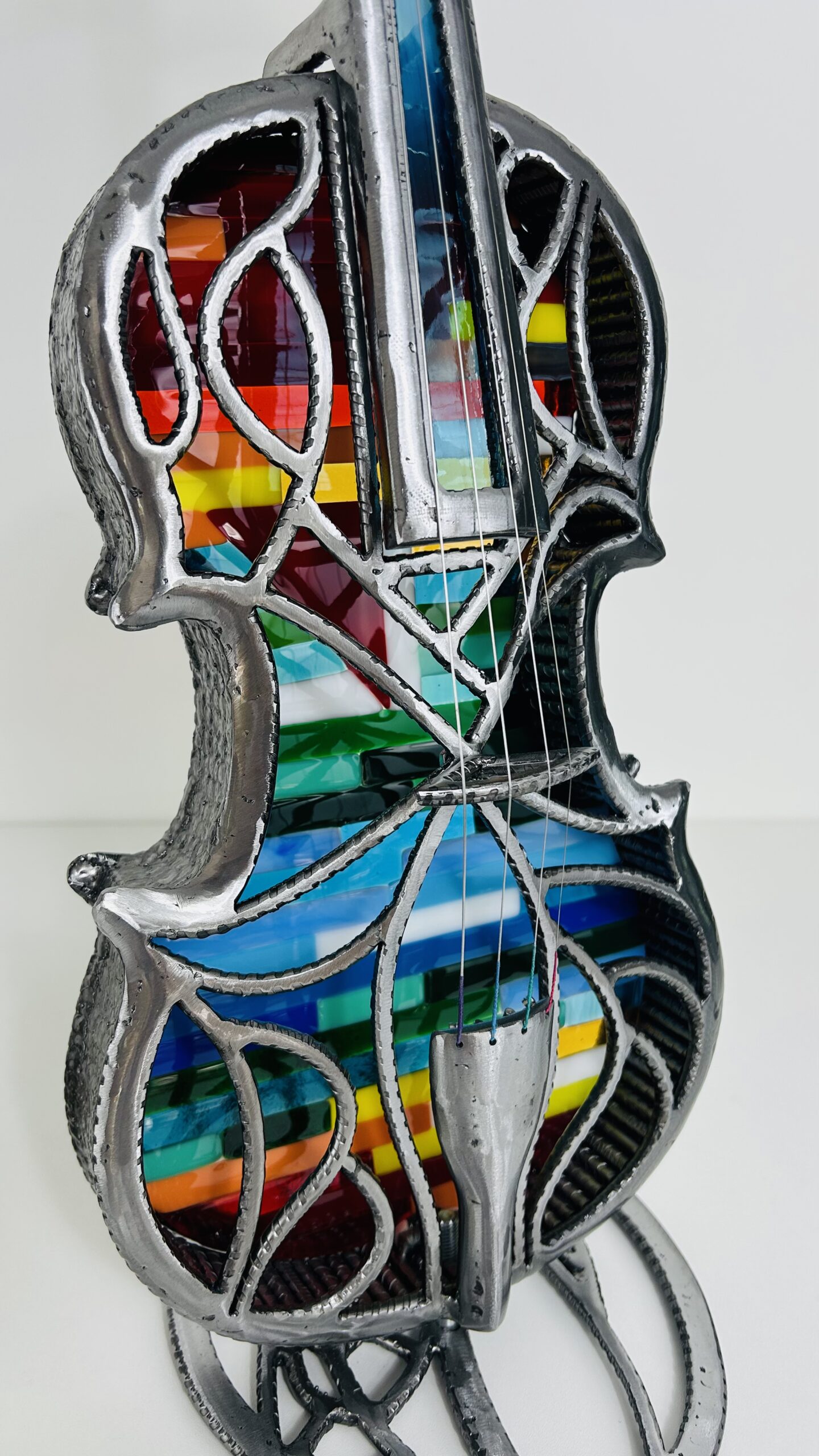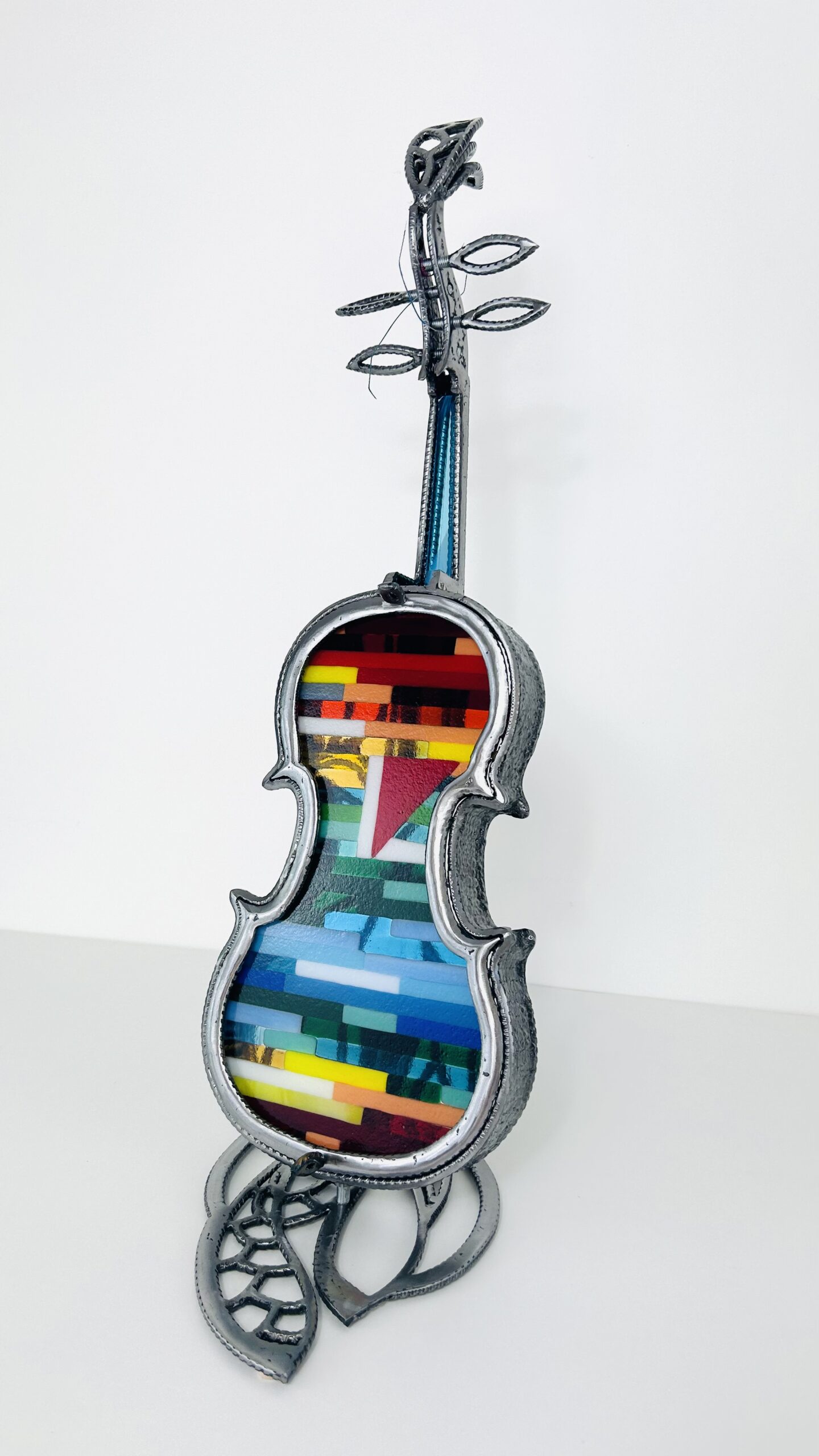 Pour ce violon, j’ai eu envie d’explorer une technique du vitrail qui me tentait depuis longtemps : le fusing !