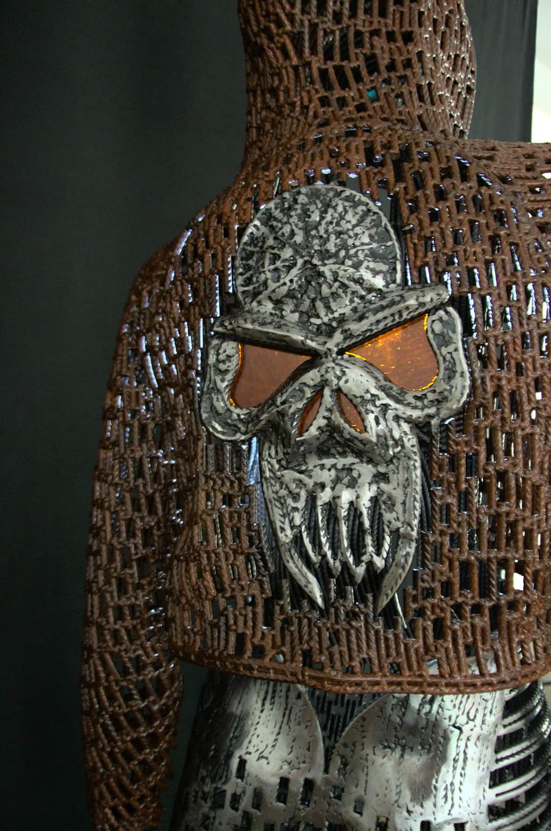 Le blouson m’a demandé beaucoup de temps, de part l’assemblage minutieux de centaines de morceaux de fer à béton, mais surtout dans la confection du gabarit que je souhaitais le plus réaliste possible.